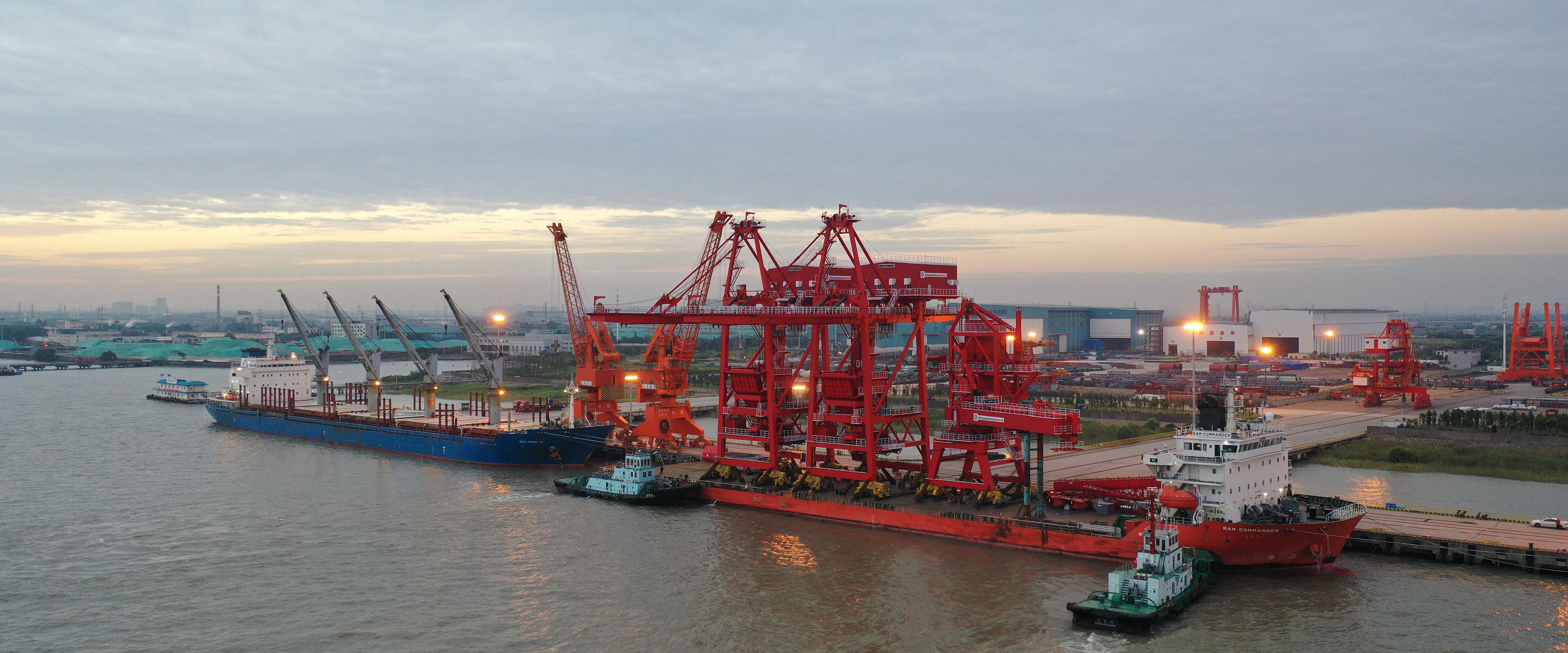 中鐵建港航局泰興港務2臺1500tph卸船機完成大件吊裝